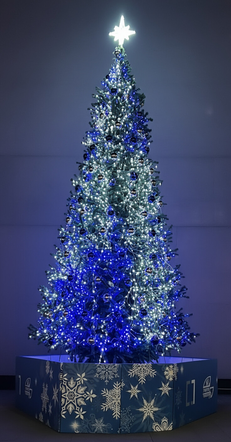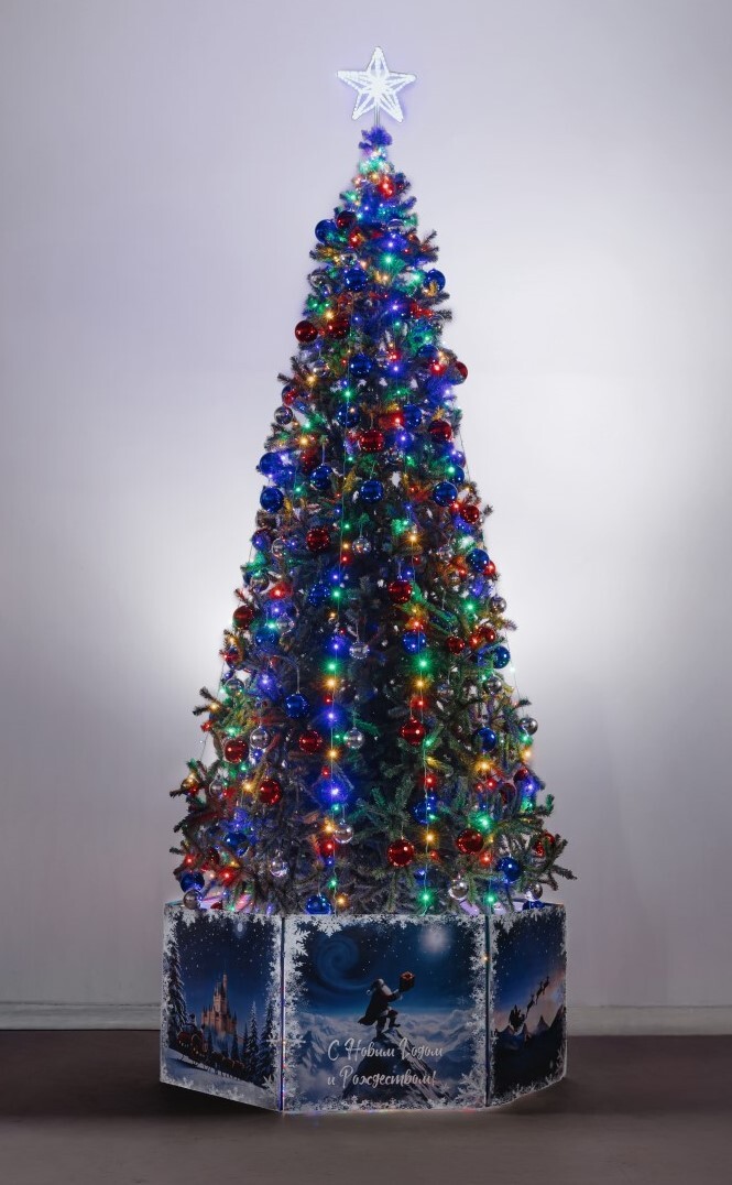 Микропроцессорный контроллер, входящий в комплект, создает динамику освещения уличной световой елки
